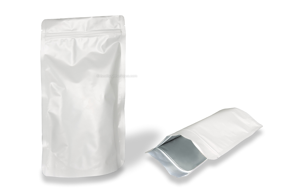 Our stylish matte white stand-up pouches offer you a new aspect of packaging options. The white stand-up pouches will immediately attract attention and give you the opportunity to present your products in a striking way. Thanks to the integrated aluminum inner layer, these white stand-up bags, also known as pouch bags, guarantee excellent protection against oxygen, moisture and light. This means the content retains its optimal quality for a longer period of time. Whether it concerns coffee products, tea, snacks or other food products, these white Doypacks maintain the freshness of the product from the very first day! The handy fold-out bottom makes them easy to stand upright and the matt white stand-up pouches can be filled effortlessly. The user-friendly grip closure allows you to easily open and close the stand-up bags. For extra security, the white stand-up pouches can also be hermetically sealed above the grip closure, using a sealing device. Use one of our sealers to seal these stand-up pouches. The tear notch then makes it possible to open the stand-up pouches again. In short, these matte white stand-up pouches combine a stylish design, optimal protection and ease of use. This makes these white stand-up pouches the ideal choice for packaging and presenting your products.