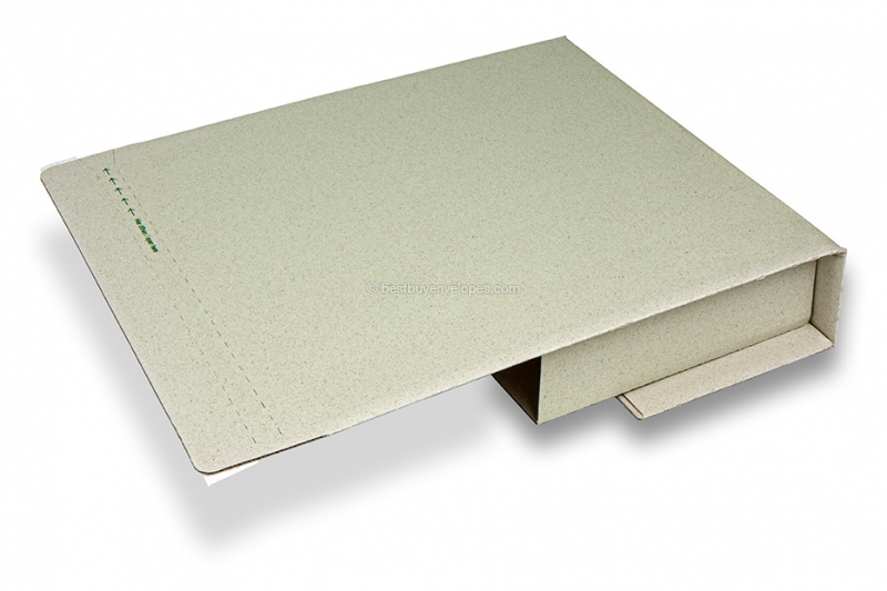 Grass-paper book packaging is made from grass-paper that consist of 30% grass-fibers. Thanks for the special technique that is used when producing these envelopes, the entire product is 100% environmentally friendly and can be recycled. The design gives a very special and original look and feel to the product thanks to the use of the grass-fibers. Due to the nature of using grass-fiber in the production process, there may be slight colour variations in individual items. These sturdy book packaging boxes are ideal for shipping (photo)books, catalogs or other similar products. Our grass-paper book packaging can also be custom printed with you own name, logo or brand!