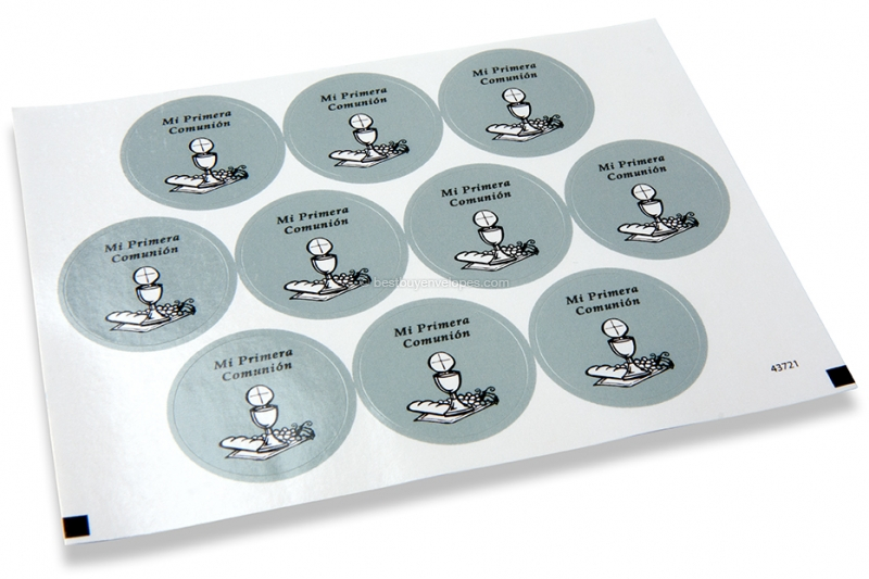 Communion envelope seals are ideal decoration for sealing advertising material or envelopes. Our decoratieve envelope seals are perfect for special events like weddings, births, birthdays, baptism and confirmation ceremonies. The envelope seals are 30 mm in diameter and feature a permanent adhesive layer. The envelope seals can be purchased in sheets of 10 items.