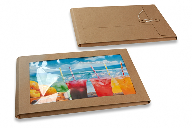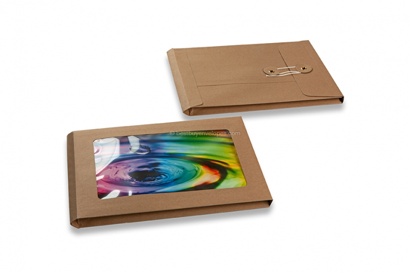 The window string and washer envelopes feature an extra large window and a string and washer seal. The window features a sturdy, transparent film and is ideal for sending large images. The window string and washer envelope is extra sturdy which will ensure the photo or image you wish to send is properly protected. This type of envelope is often used by advertising agencies or photographers who wish to send out creative mailings and invites. For thicker contents, there is a version with a side pleat and a double crease line on the flap.