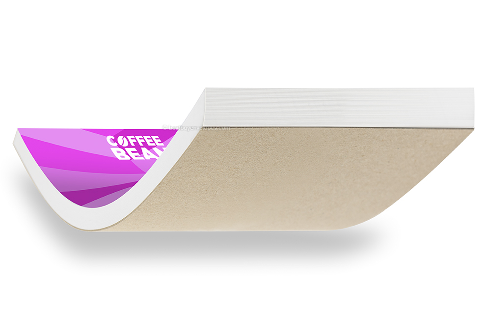- 80-Gram white paper, glued at the top onto sturdy 600-gram grey cardboard (1.8 mm thick)